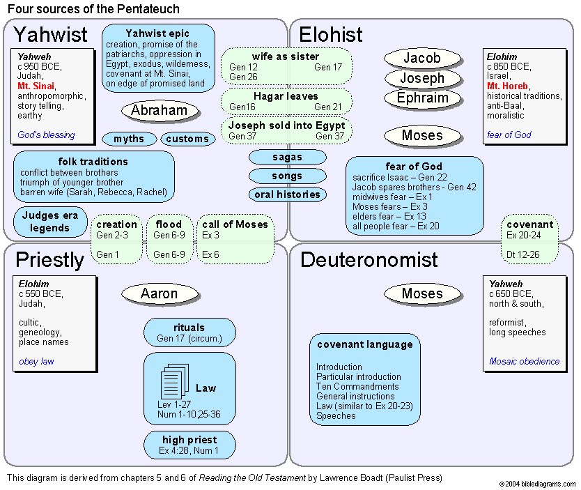 | J - JAHWIST | E - ELOHIST | P - PRIESTLY | D - DEUTERONYMIC |