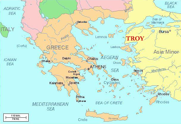Troy was an ancient city in Asia Minor (now part of Turkey). Ruins of Troy have yielded historical relics that are about 5,000 years old. It was the dominant culture in the Western world when the Greek civilization began its ascent.