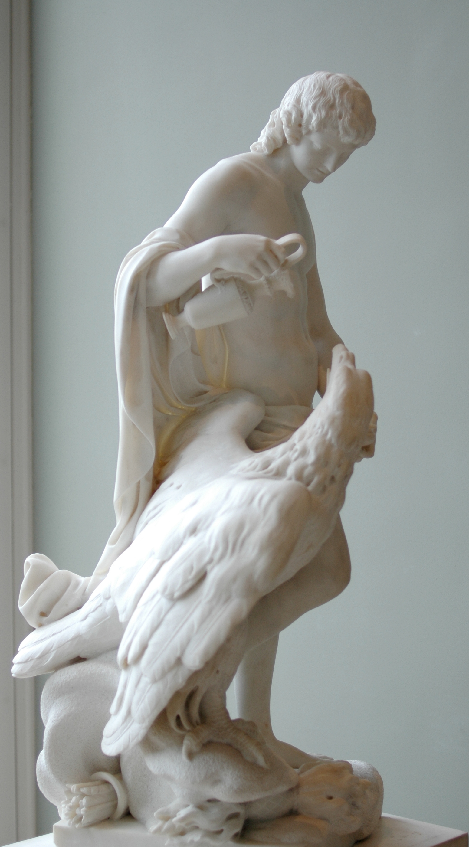 The king of the gods once burned with love for Phrygian Ganymede, and to win him Jupiter chose to be something other than he was. Yet he did not deign to transform himself into any other bird, than that eagle, that could carry his lightning bolts. Straightaway, he beat the air with deceitful wings, and stole the Trojan boy, who still handles the mixing cups, and against Juno’s will pours out Jove’s nectar.”