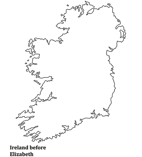 Here's the English-owned land in Ireland before the reign of Elizabeth I.