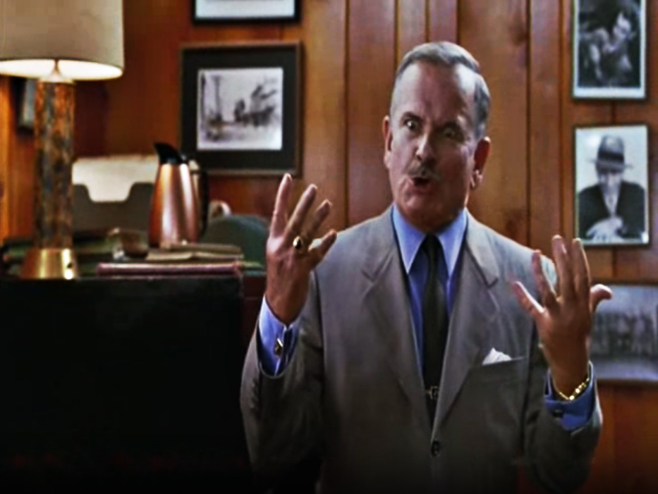 The pin in his necktie will be used to illustrate his bug-like status in 56-58.
