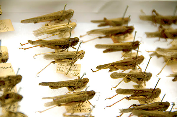 Insects are pinned through the thorax for display