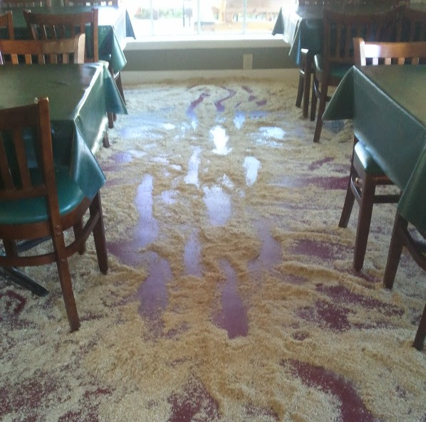 Restaurants put sawdust on the floor to absorb spills and odors. The sawdust in the restaurant pictured here is changed every two weeks.