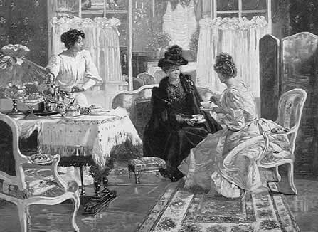 We return to the scene, after Prufrock’s digressions, and everything is still the same; his indecision hasn’t changed anything. The women return, doing the exact same thing. Their lives are repetitive, just like Prufrock’s. The women are implied to be pseudo-intellectual and pretentious, who don’t do anything of real use but spend their days "visiting," "lunching," "taking tea," and talking about the appropriate topics for such visits: classical art and literature, the things women of that era were told they were supposed to interest themselves in. Contrast them with Hesiod’s farmers.