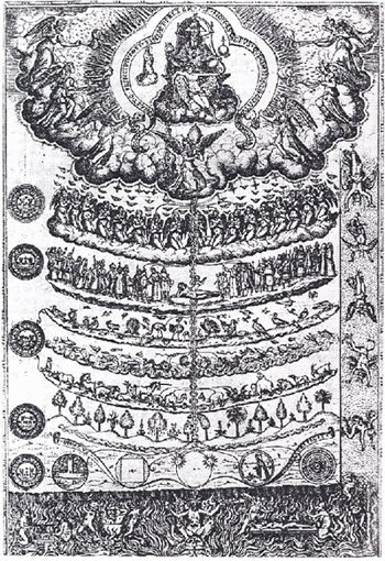 Alexander Pope, in his "Essay on Man," lays out the best explanation for this metaphor. The universe is an orderly creation, set in motion by a Creator God. Every aspect of creation has a prescribed place and as long as all created entities remain in that prescribed place, all will go well. Humans have Reason to set them above the animals, but our place in the Great Chain of Being is below the angels; we have no business questioning the ways of God. Our job is to understand our own nature and to regulate it.