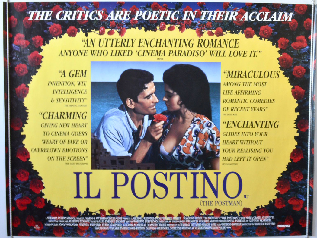 Screenplay by Anna Pavignano, Michael Radford, Furio Scarpelli, Giacomo Scarpelli, and Massimo Troisi.