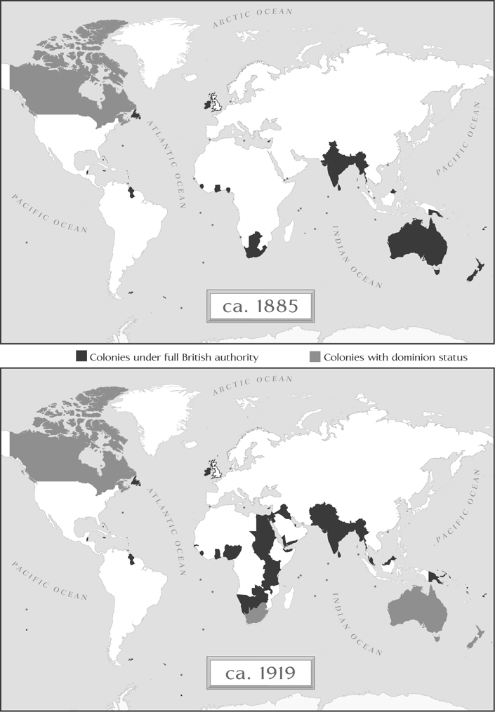 Britain had Freetown in Sierra Leone, forts along the coast of The Gambia, a presence at Lagos, the Gold Coast protectorate, and a fairly major set of colonies in Southern Africa (Cape Colony, Natal, and the Transvaal, which it had annexed in 1877).
